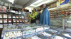 創業100年以上、ガラスケースに並んだ昔懐かしのお菓子を量り売りで買える店