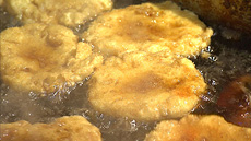さらに宇野千代や有名女優も買いにくるという蒲鉾店では 手作り「がんす」や「レンコン揚げ」をつまみ食い!